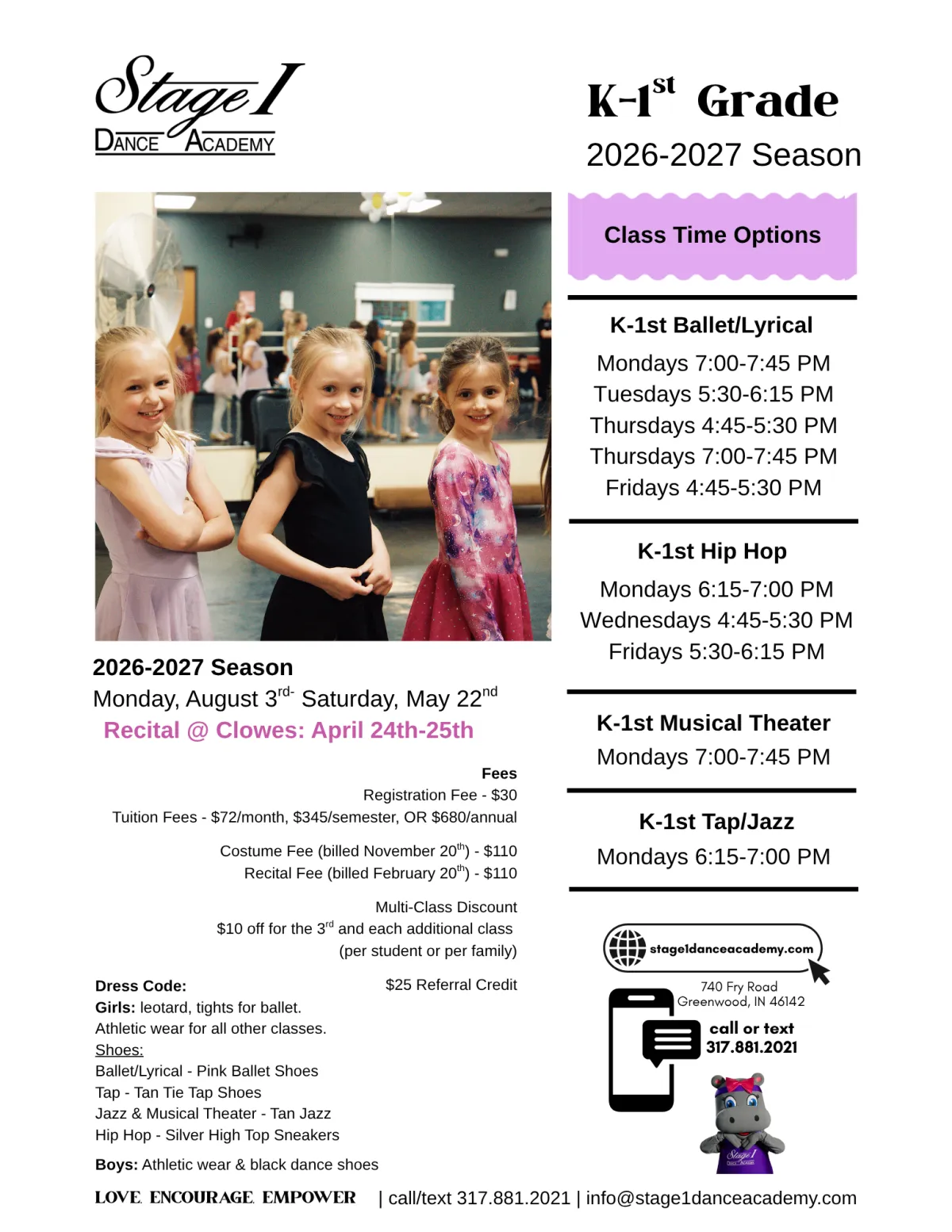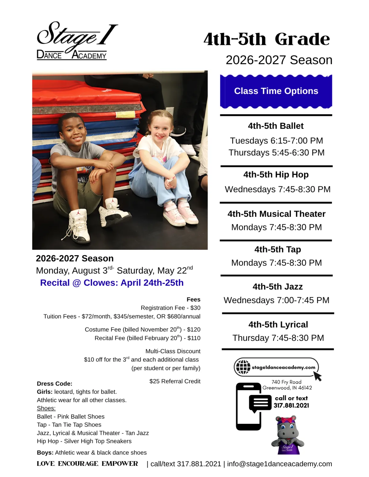Hip Hop dance explores movement from many different social and cultural backgrounds. Our hip hop classes focus on basic steps and rhythms while encouraging dancers to find their unique movement style.